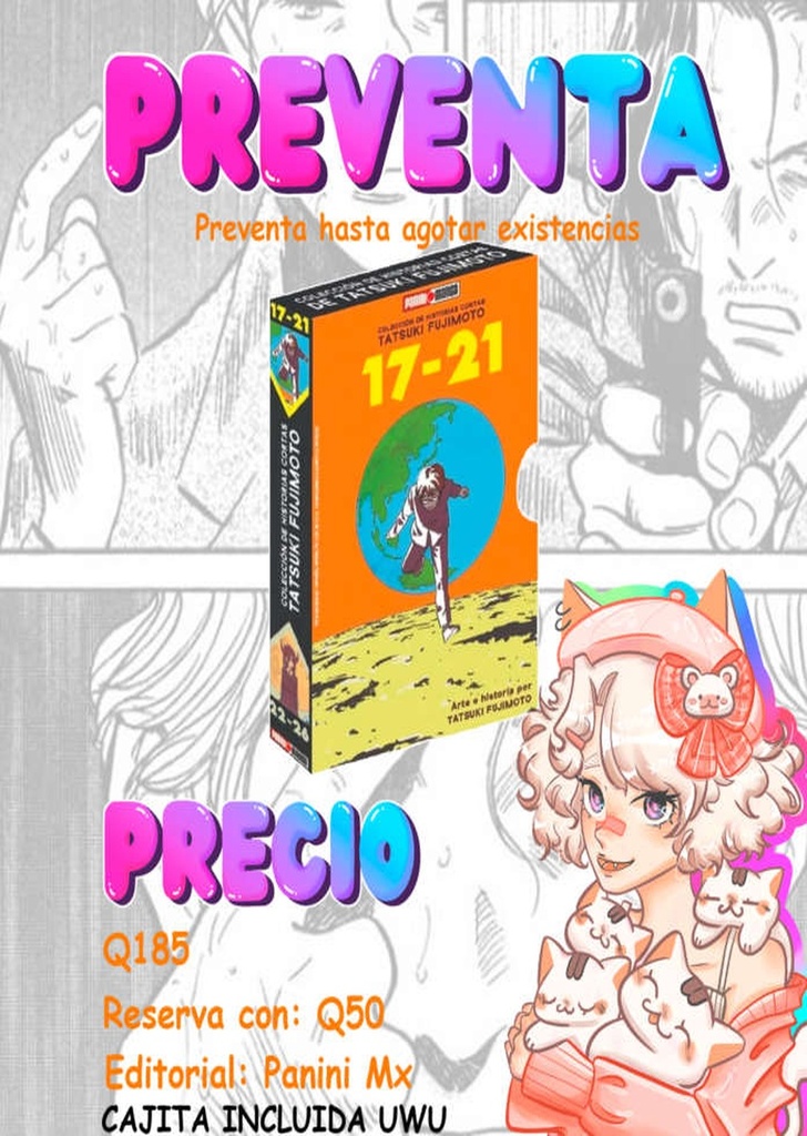 ¡Aquí tienen el punto de partida de Tatsuki Fujimoto, el prodigio creador de “Chainsaw Man”! Desde su primera historia publicada “Dos pollos desplumados estaban alimentados en el patio” “Sasaki detuvo la bala” donde la pasión de la pubertad se sale de control, una comedia romántica de ciencia ficción. “El amor es ciego” en la que el amor desbordado ahuyenta todo, hasta “Shikaku” que trata del enamoramiento de una chica asesina, ¡Es una colección de historias cortas donde estalla su increíble talento!